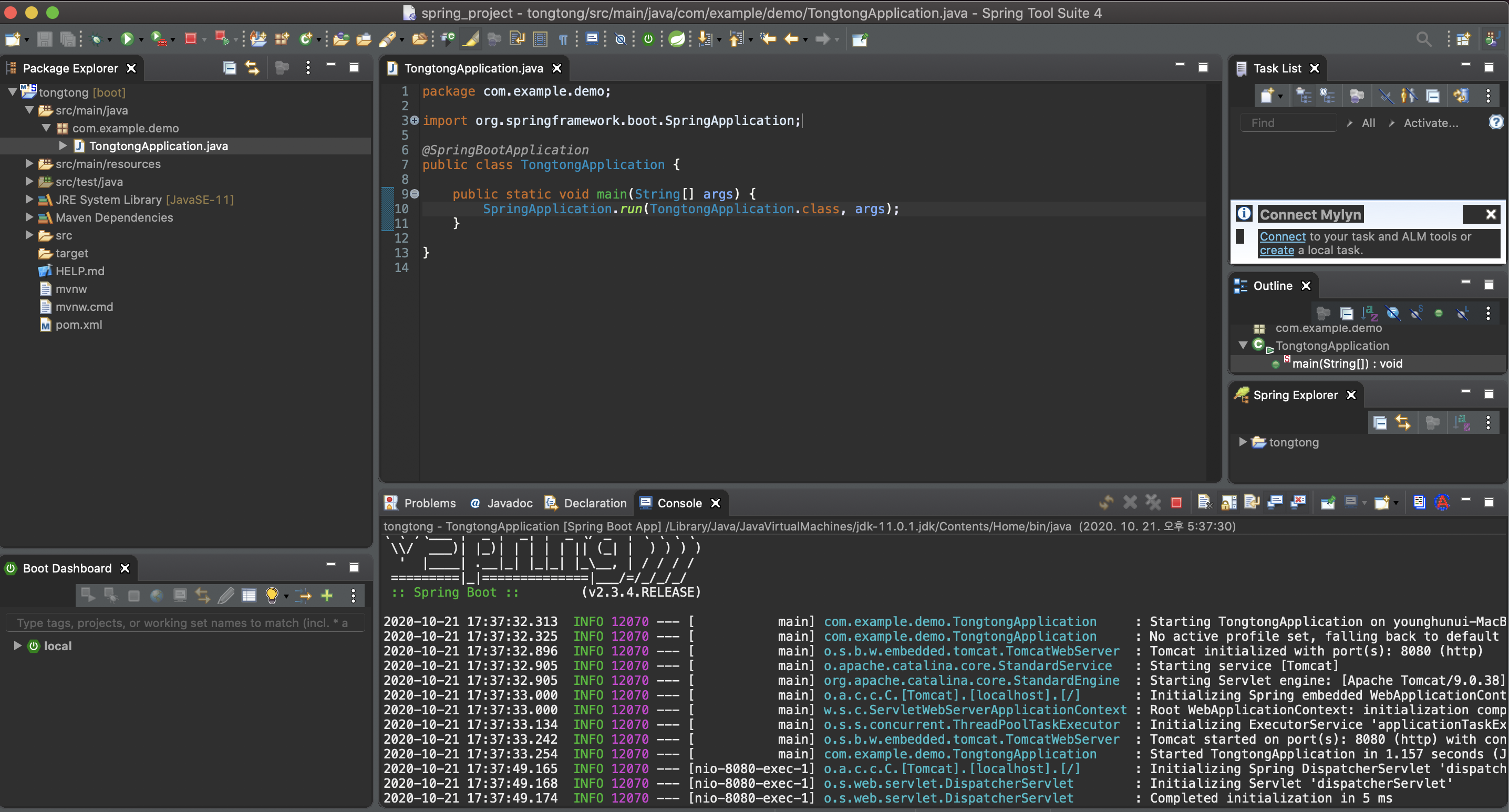 저는 서버 실행 시 Spring boot(내장 서버)로 실행했습니다.(달라도 무방)
