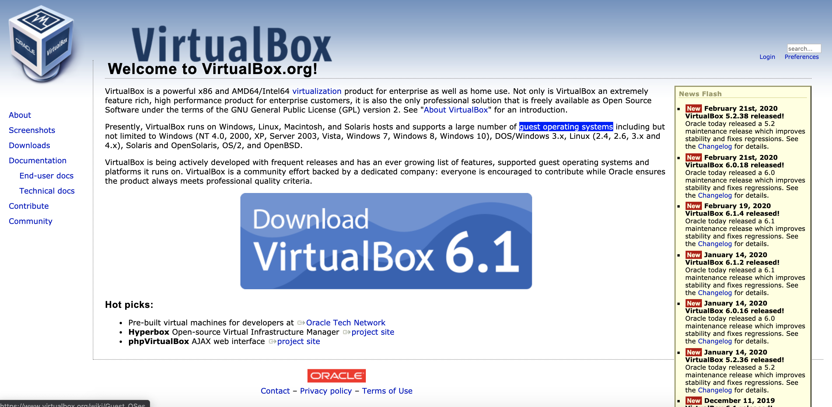 Welcome to VirtualBox.org! News Flash New February 21st, 2020VirtualBox 5.2.38 released! Oracle today released a 5.2 maintenance release which improves stability and fixes regressions. See the Changelog for details. New February 21st, 2020VirtualBox 6.0.18