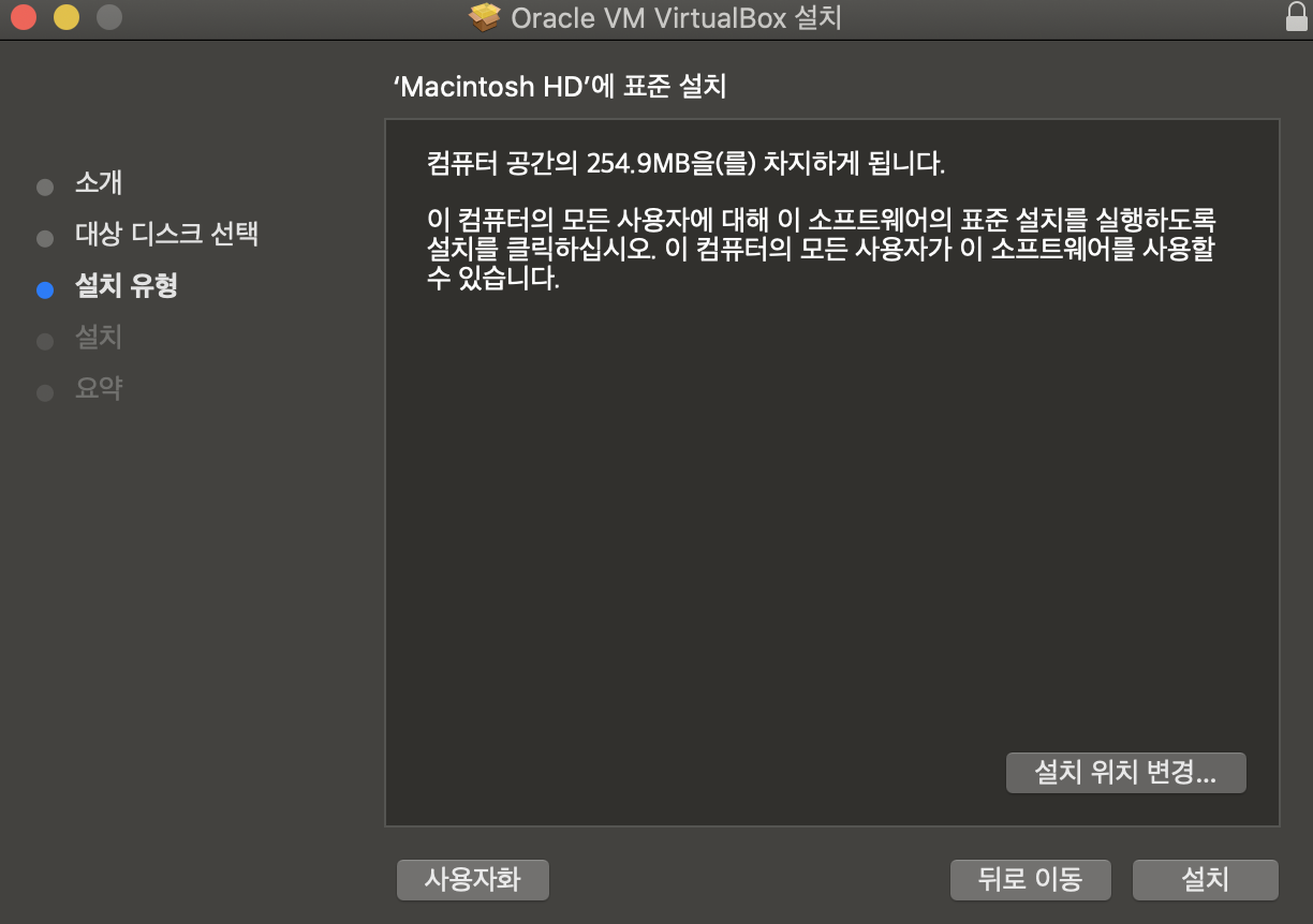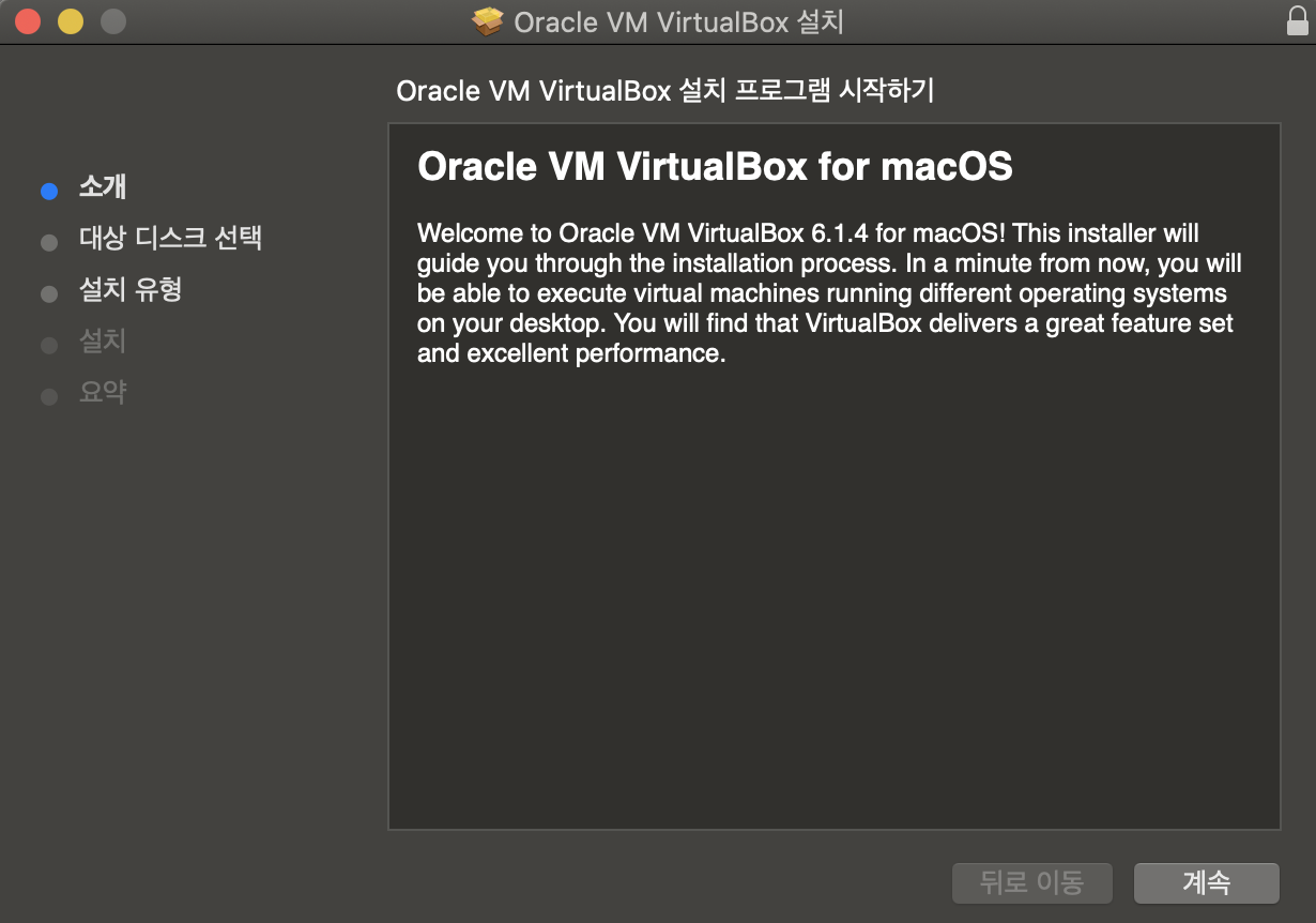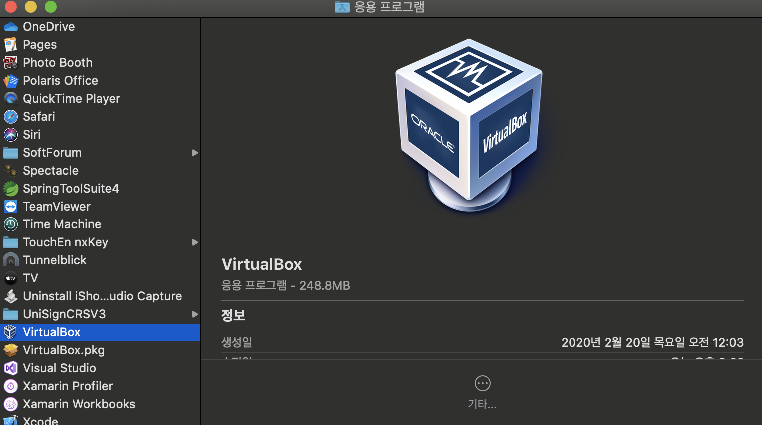 15. 다시 응용프로그램 >> VirtualBox.pkg 더블클릭하여 아까와 동일하게 설치 진행