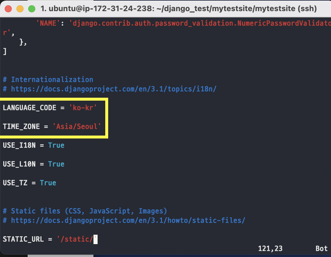 3. 언어를 한국어로 설정하고 (기본은 영어로 되어 있다) 시간대를 한국으로 맞춥니다.