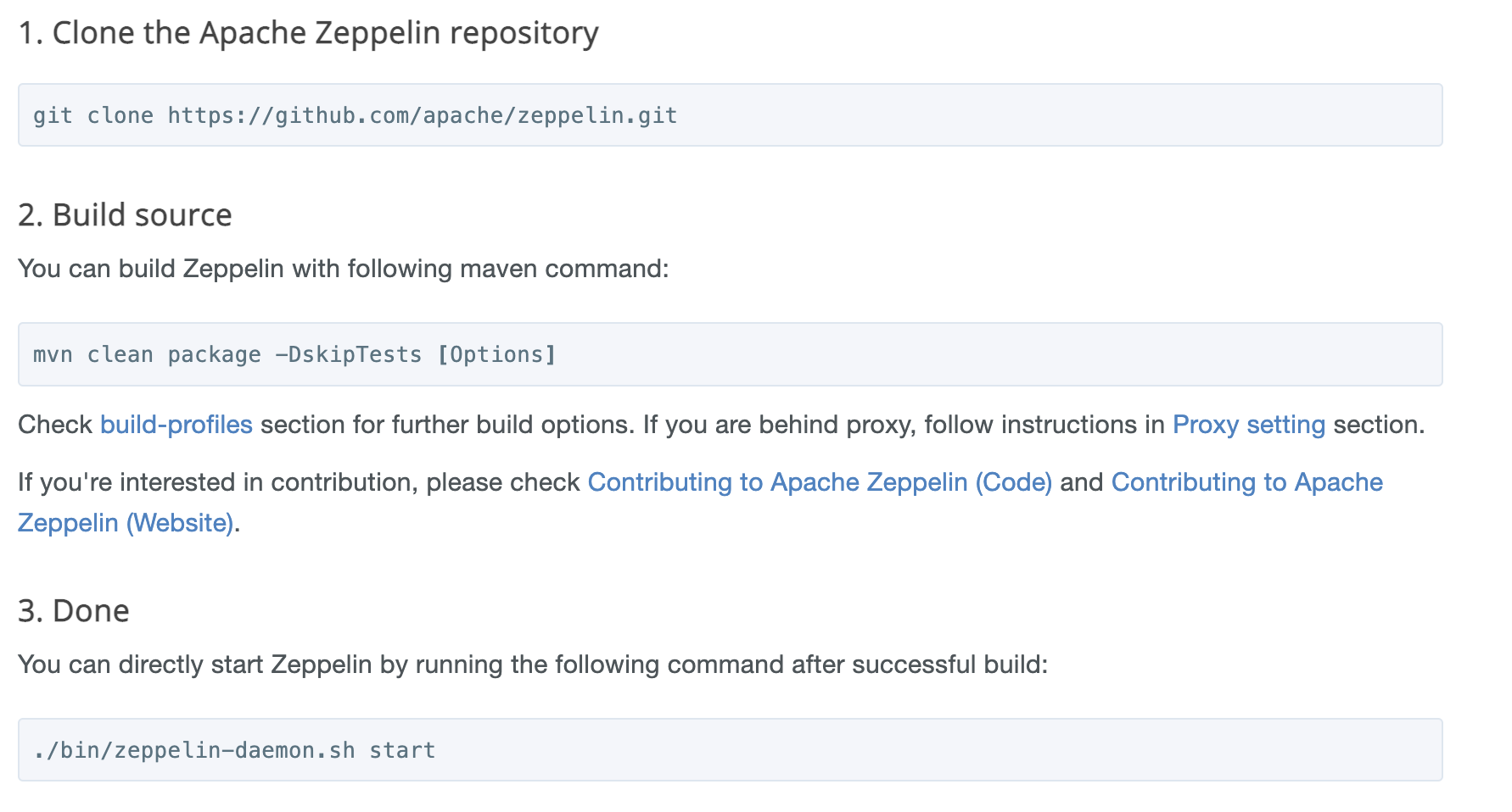 Zeppelin 소스를 빌드하는 방법은 아래 3가지 단계입니다.