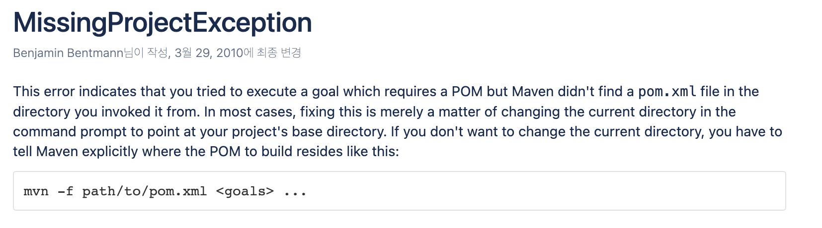 이 에러는 구글링 해보니, maven 이 pom.xml 파일을 찾지 못해 발생하는 에러입니다.