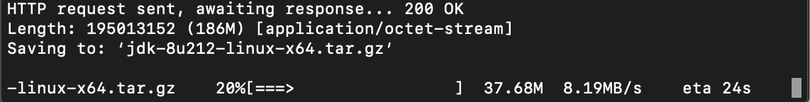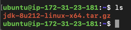 명령어 실행하면 jdk-8u212-linux-x64.tar.gz 가 잘 받아진 것을 볼 수 있다.