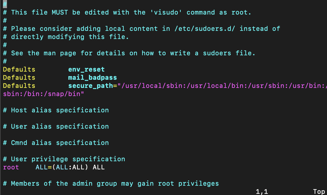 그리고 sudoers 파일에 사용자를 등록해준다.