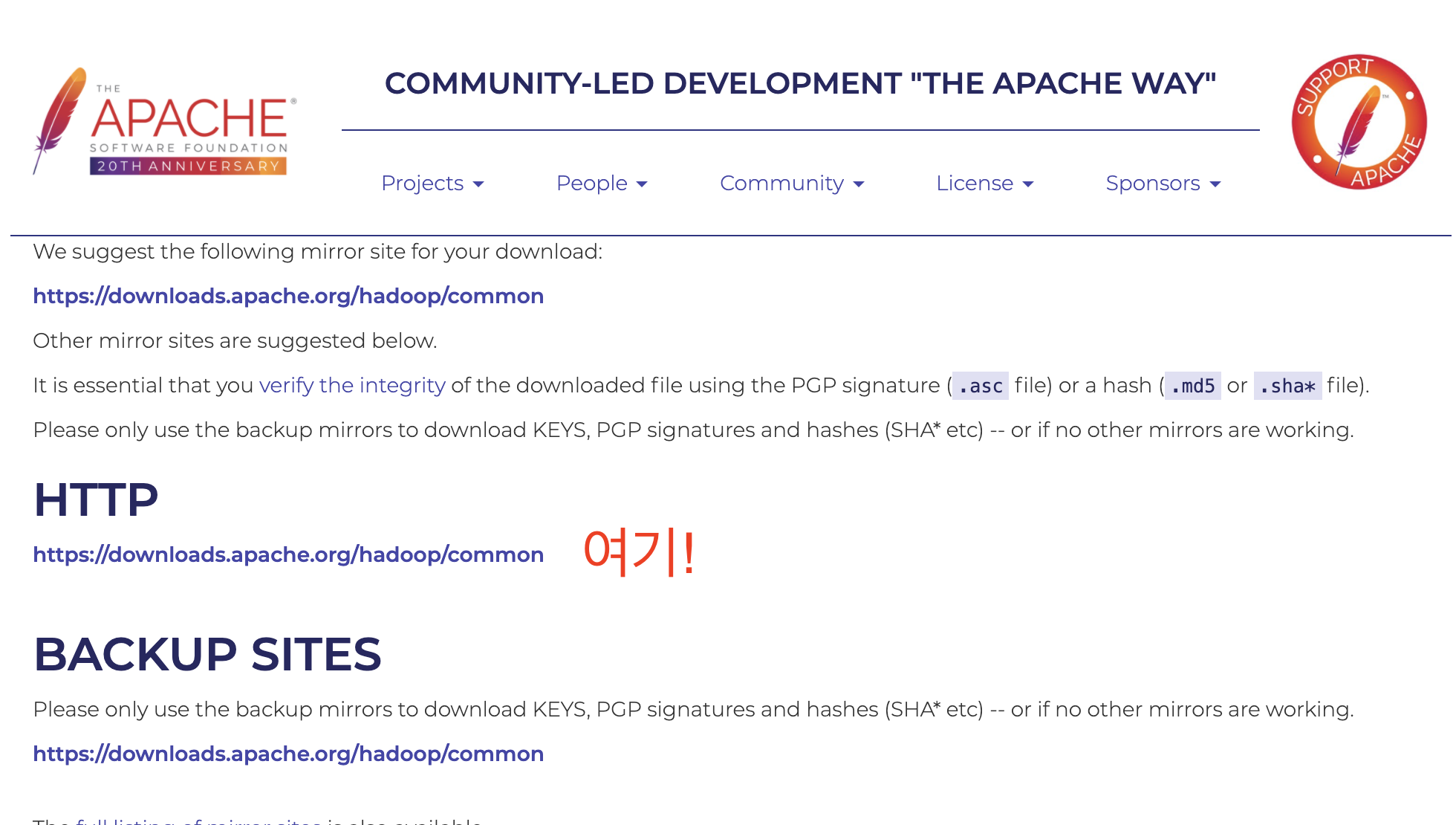3. https://downloads.apache.org/hadoop/common 클릭하여 들어감