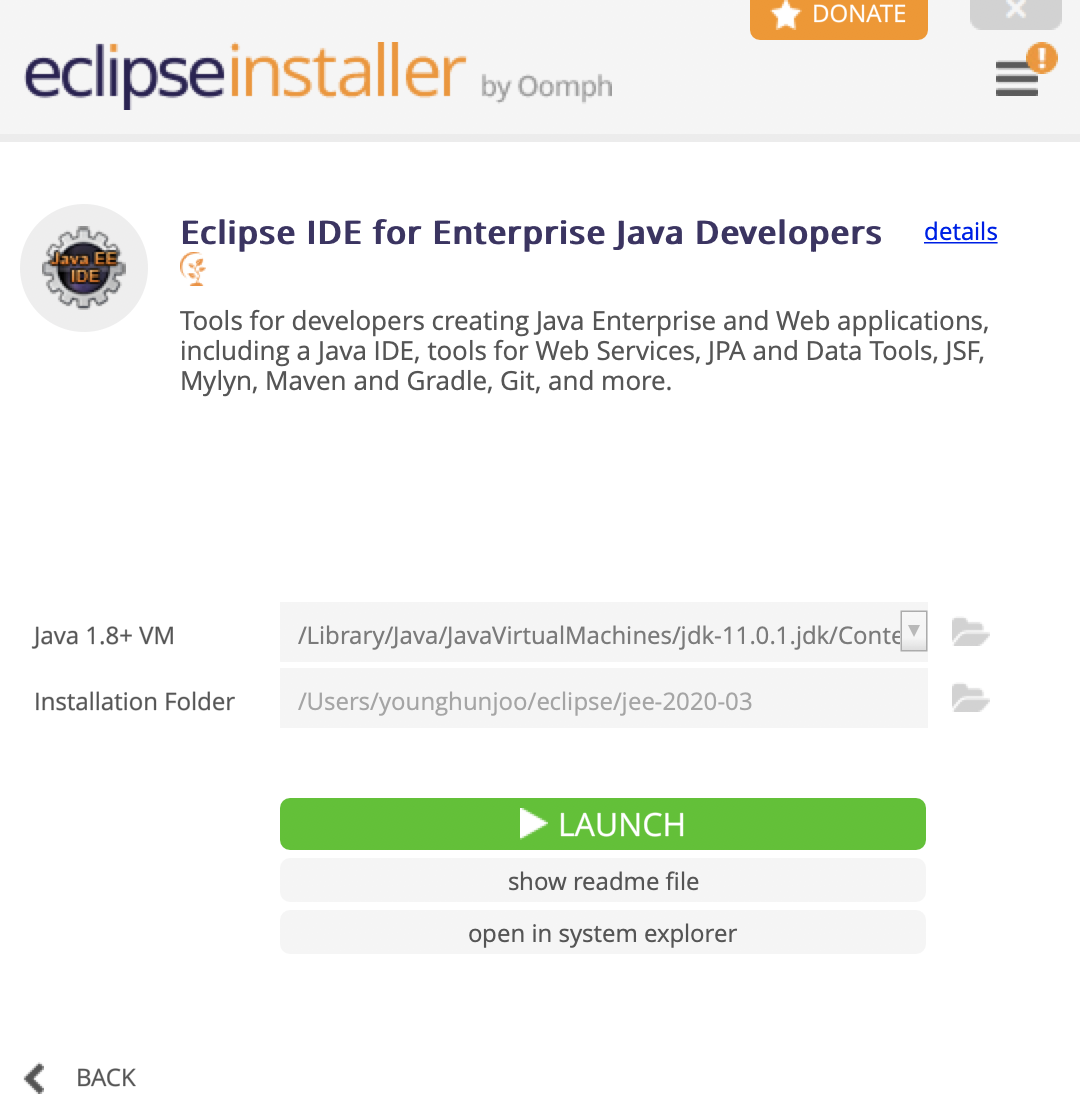 2번째 "Eclipse IDE for Enterprise Java Developers" 선택하여 설치를 진행합니다.