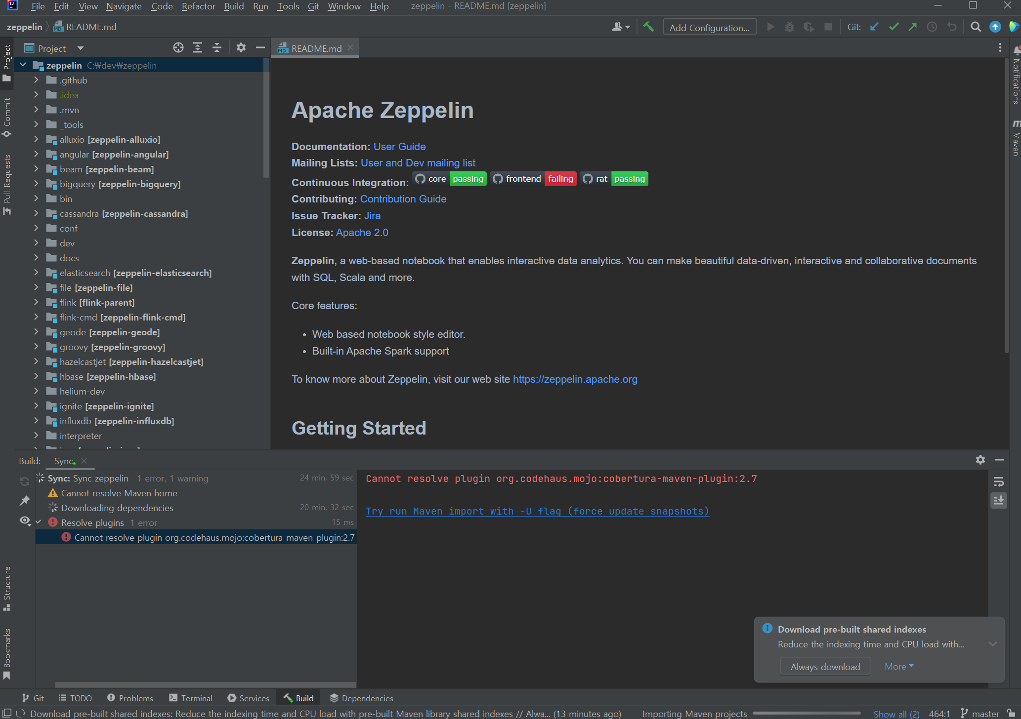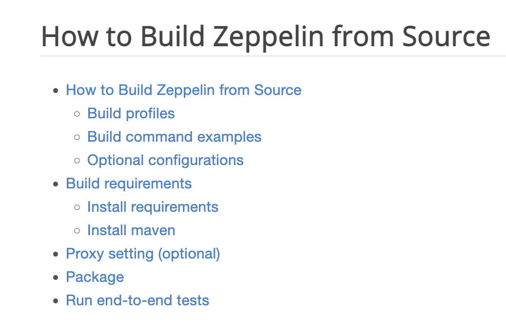 Zeppelin 프로젝트 README.md에서 친절하게 빌드할 수 있는 방법을 명시하고 있습니다.