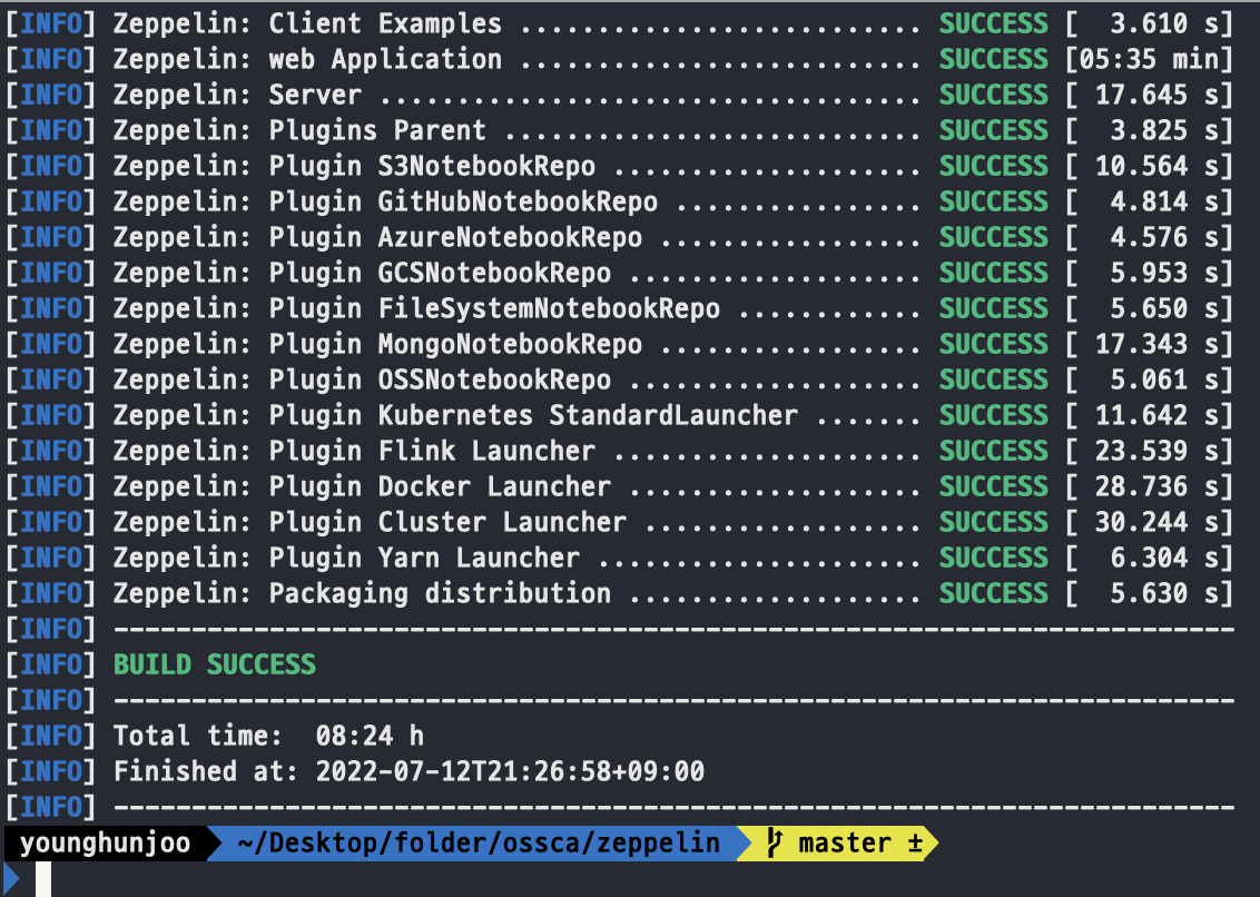 패키지를 다운로드 받았다면 Zeppelin을 소스레벨에서 빌드할 차례입니다.