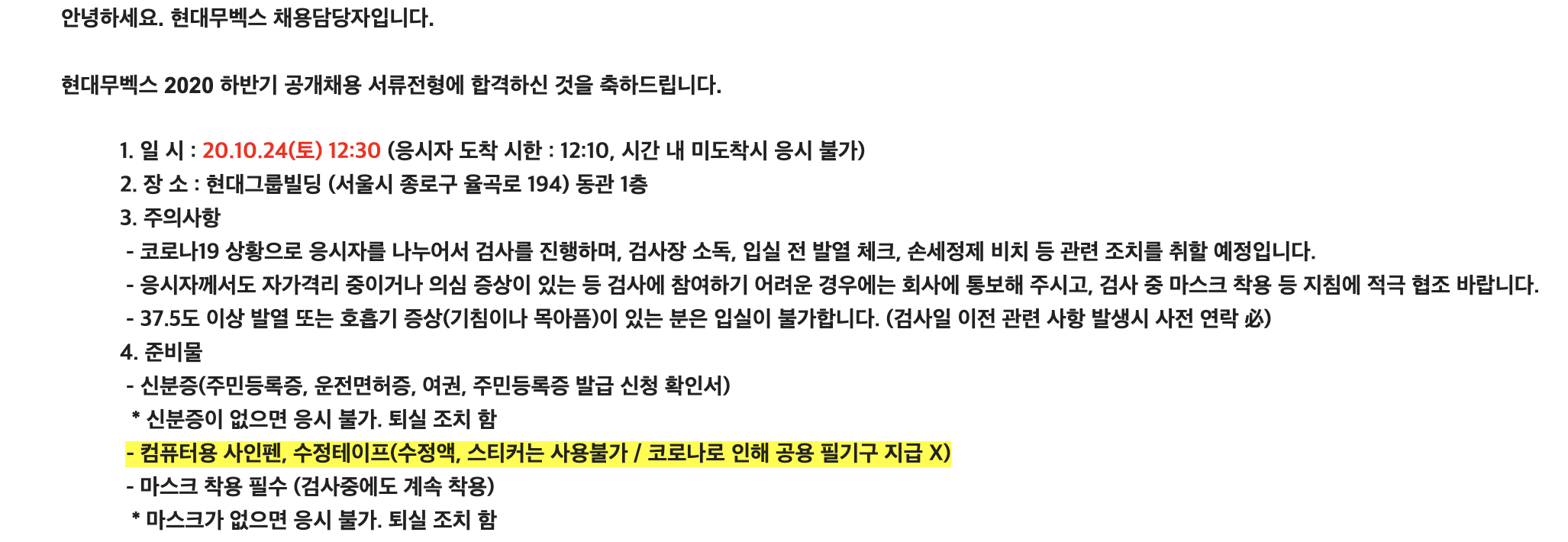 2. 현대무벡스 인적성(거속시, 일의 양, 도형 추리 어느정도 했다. 농도 문제도 풀었다. 추론은 안품)