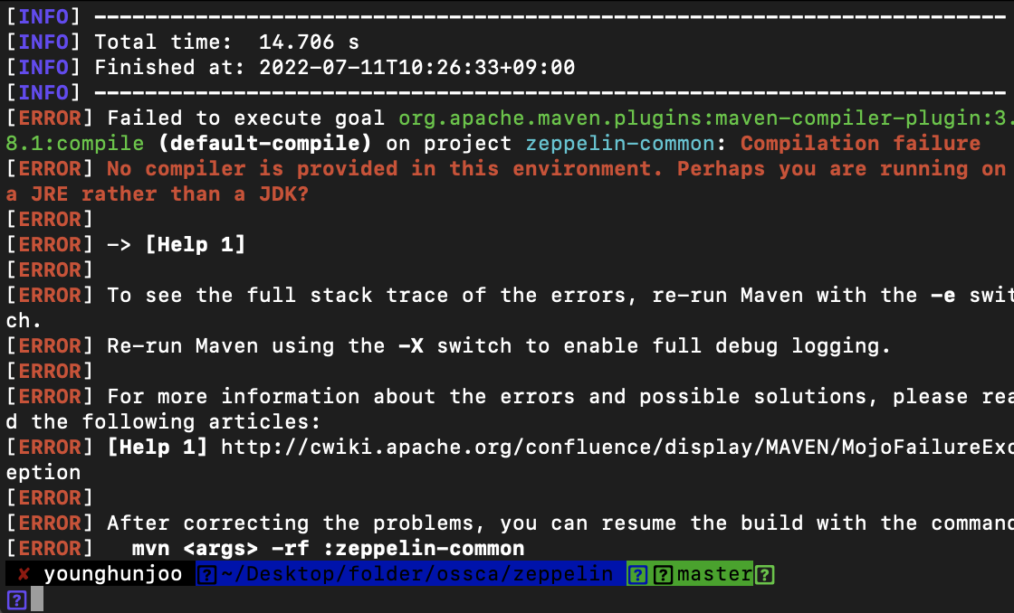 해당 에러를 구글에 검색해보니, mvn bash에서 현재 jdk 버전이 잘못 설정되어있던 것으로 보여집니다.